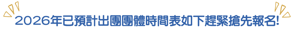 機位18+1位 | 目前報名18位 | 特別團已滿團 | 🔵等航空公司放位,即將開團 |